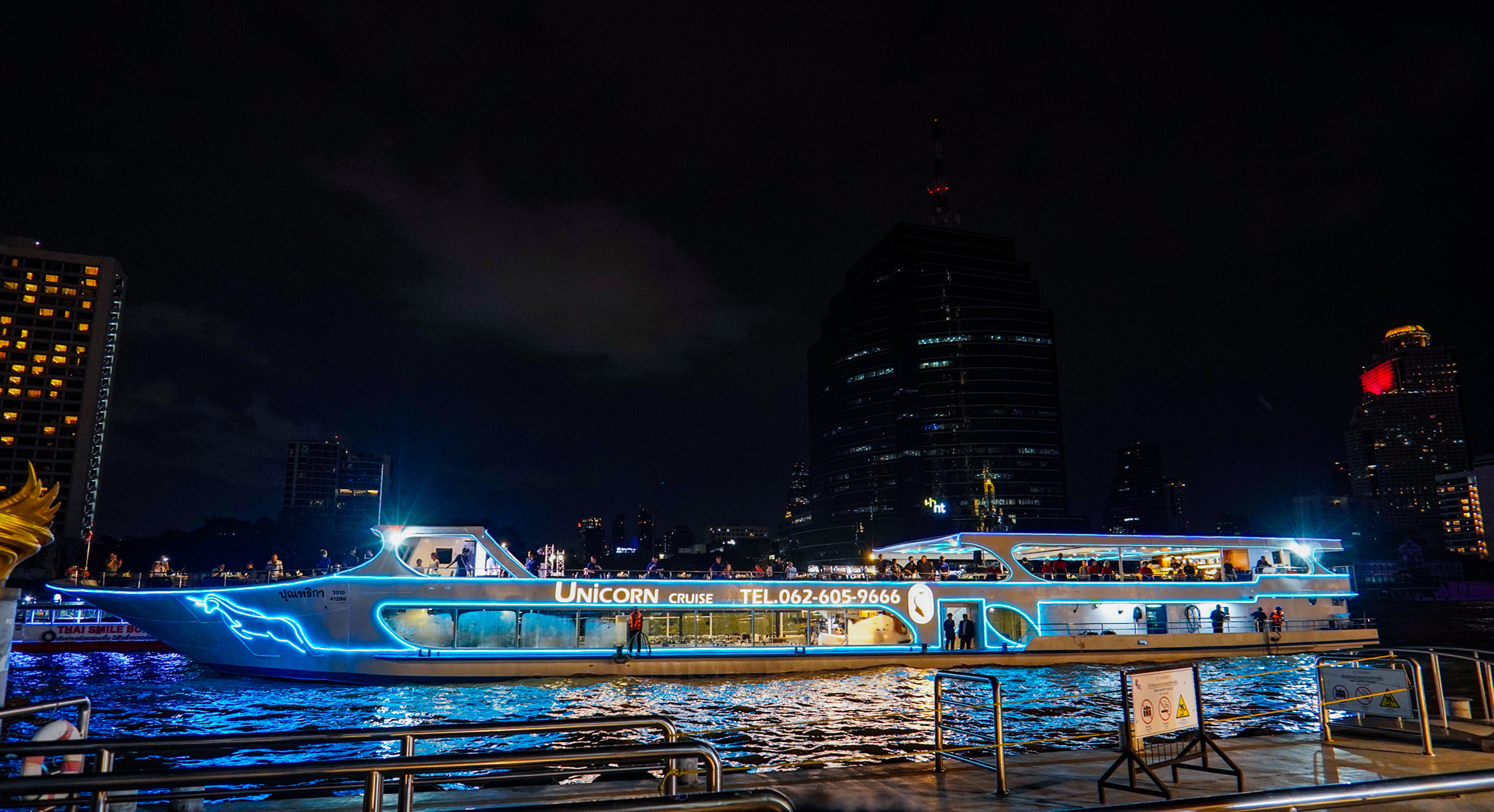 ดื่มด่ำไปกับบรรยากาศแห่งความหรูหรางดงามของ Unicorn Cruise ตระการตากับแสงสียามค่ำคืนในท้องน้ำเจ้าพระยา ละเมียดละไมกับอาหารนานาชาติที่ตั้งใจรังสรรค์ด้วยวัตถุดิบชั้นยอดหลากหลายเมนู ชมการแสดงศิลปวัฒนธรรมไทยอันน่าภาคภูมิใจและรับฟังบทเพลงไพเราะ อีกทั้งบริการคุณภาพระดับโรงแรมห้าดาวให้ค่ำคืนที่แสนโรแมนติกของคุณ เต็มเปี่ยมไปด้วยความสุขกับคนพิเศษข้างกาย