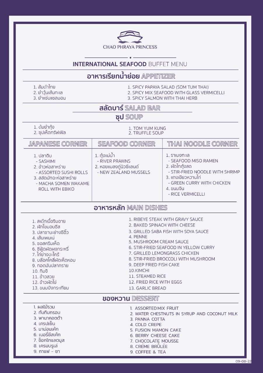 Chaophraya Princess Cruise ล่องเรือแม่น้ำเจ้าพระยา ดินเนอร์ Seafood Buffet