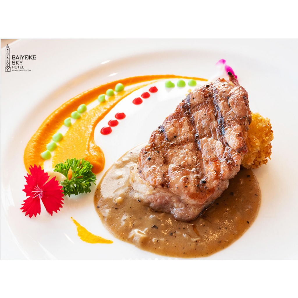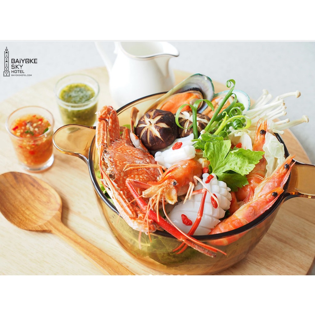 - ✔️ Baiyoke signature savory, sliced Wagyu beef and Kurobuta pork Nam Tok Shabu