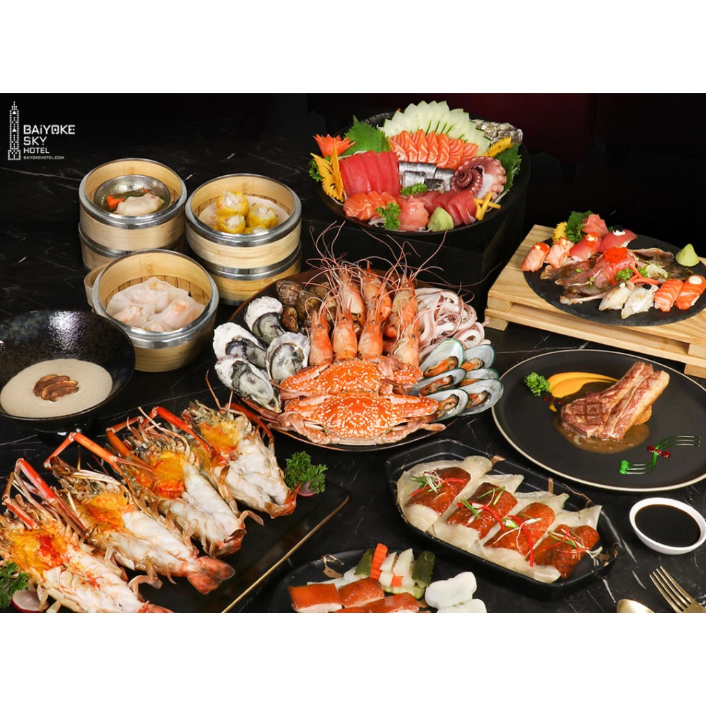 Baiyoke Sky Hotel อินเตอร์บุฟเฟ่ต์ บุฟเฟต์นานาชาติ ใบหยก @Bangkok Sky ตึกใบหยก บุฟเฟต์เมนูหลากหลายจากซีฟู้ดและอาหารนานาชาติ