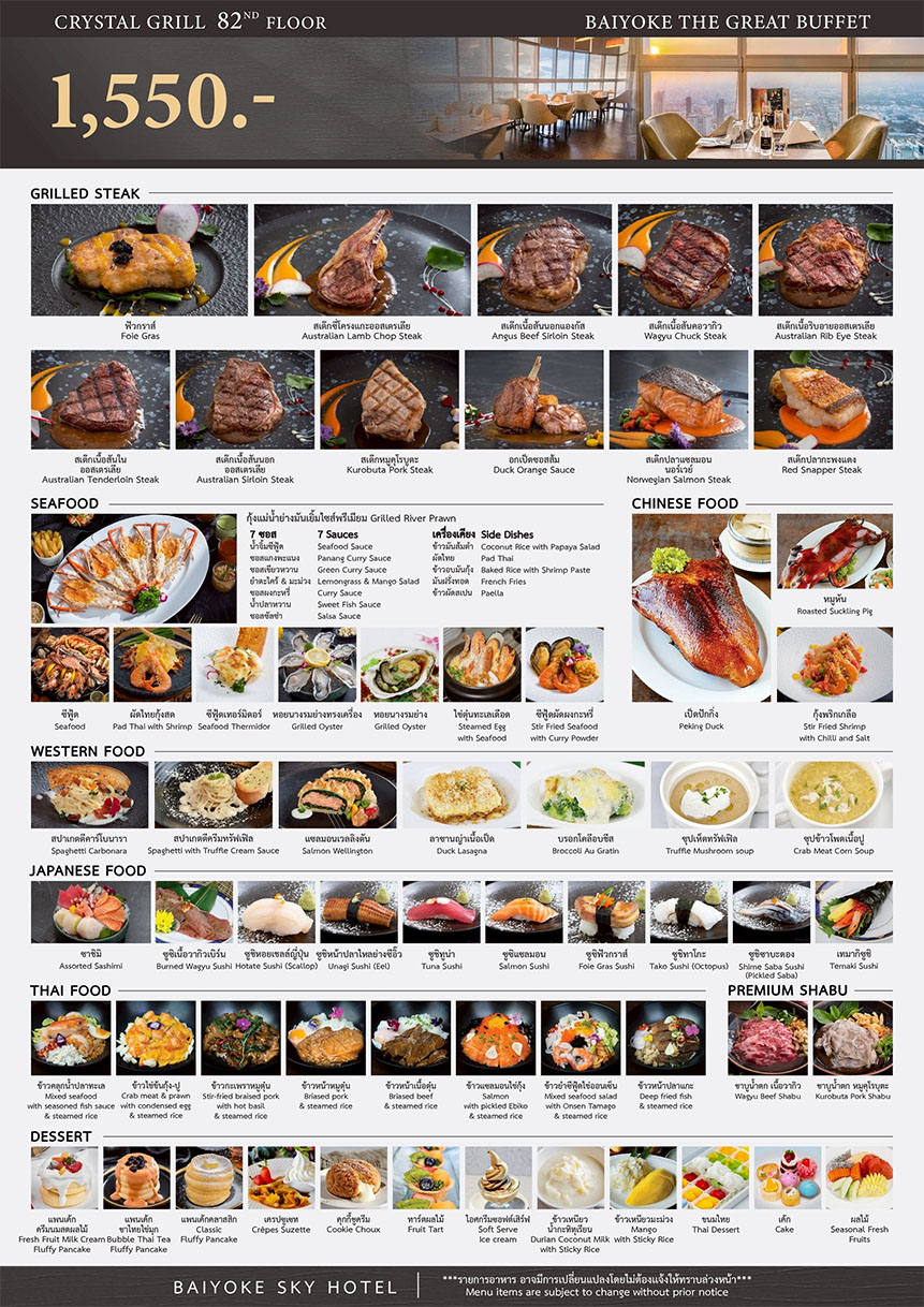มื้อค่ำ บุฟเฟ่ต์ใบหยก ชั้น 82 Baiyoke Buffet บัตรรับประทานอาหาร Dinner @ CRYSTALGRILL ชั้น 82